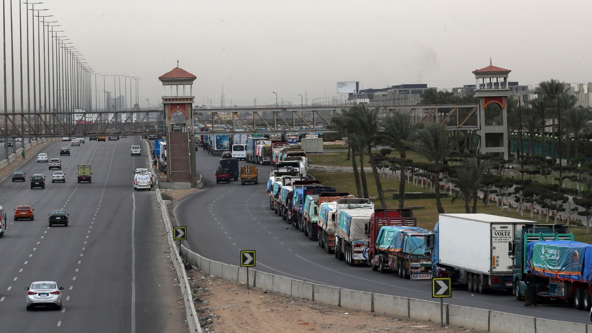 L’impatto è cominciato da prima, da Al-Arish è tutta una distesa di camion di aiuti fermi ai bordi delle strade. Adesso siamo in un immenso parcheggio e tutto è immobile. Da qui si arriva al valico di Rafah che da questo lato è molto simile a come appare all’interno. C’è una grande porta, una strada che conduce a un edificio, al quale non abbiamo avuto accesso, e al di là di quello, c’è la nostra Gaza. È un po’ strano non vederla, non percepirne la presenza al di là di quel punto. Abbiamo notato numerosi camion, che anche se in movimento, non stavano effettivamente entrando a Rafah.