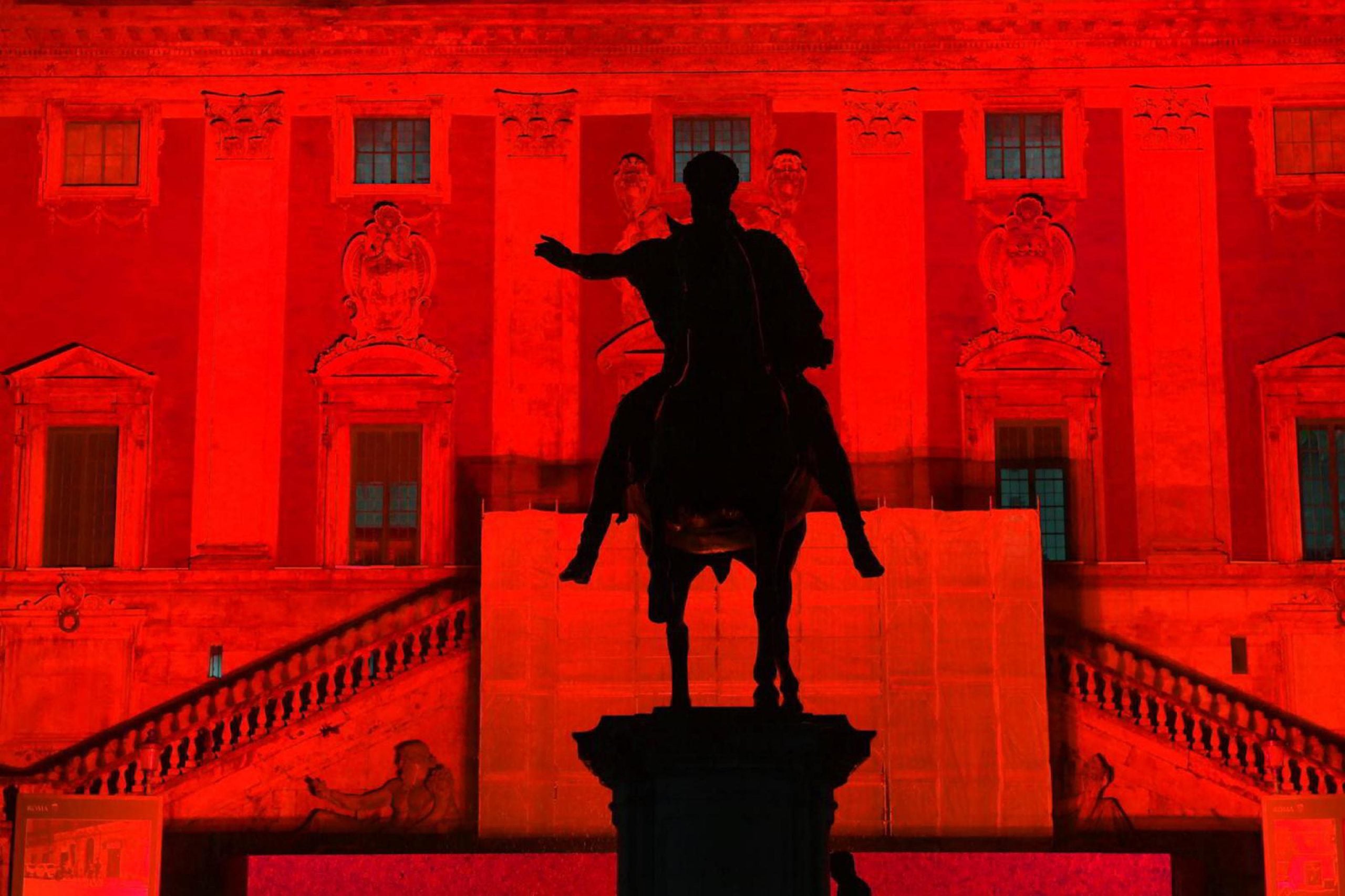 Foto | Piazza del Campidoglio illuminata di rosso nella giornata contro la violenza sulle donne