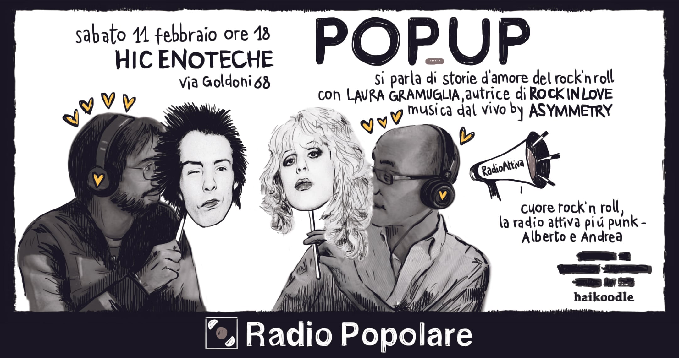 A tre giorni da S.Valentino PopUp torna a itinerare e trasmette sabato 11 febbraio dalle 18.30 in diretta nel nuovo locale di Hic, in via Carlo Goldoni 68 a Milano.