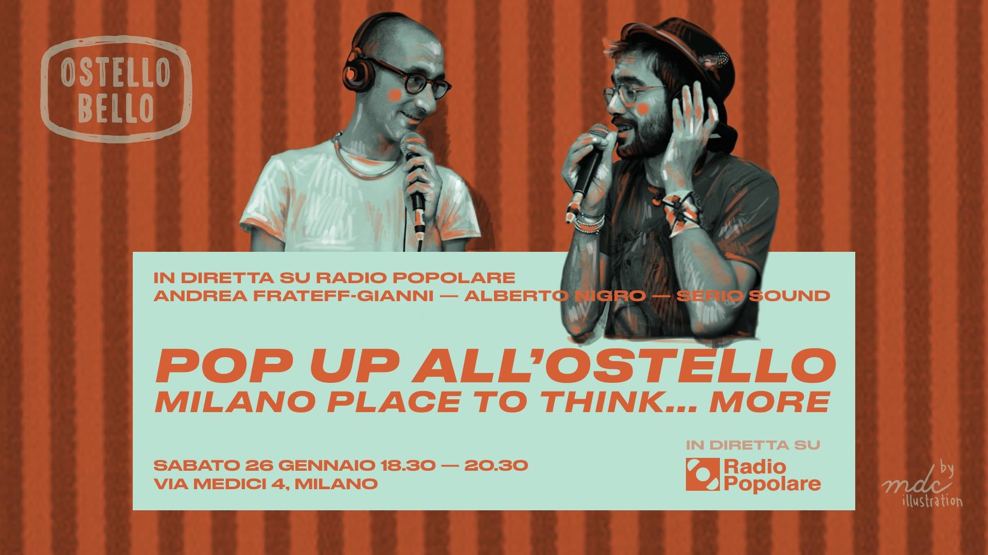 Dopo i fasti del compleanno al Bar Basso di settimana scorsa sabato 26 gennaio altro grande classico per i ragazzi di PopUp che tornano all’Ostello Bello di via Medici 4 a Milano in diretta dalle 18.30 alle 20.30.