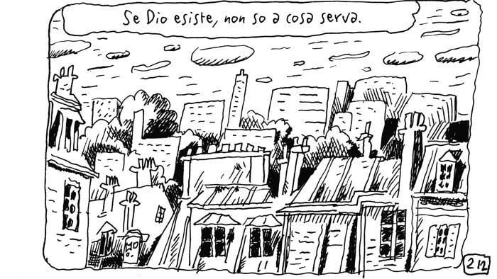 E’ appena stato stampato in Italia da Rizzoli Lizard il Carnet intitolato Se Dio esiste – Quaderni parigini dal Gennaio al Novembre 2015. 240 pagine che partono dalla strage della redazione di Charlie Hebdo dell’11 gennaio 2015 e si concludono con i sanguinosi attentati del 13 novembre 2015. Joann Sfar non è interessato a fare della retorica o a prendere una posizione. O meglio, non si schiera dalla parte di questa o quella fazione. Alza la voce e usa la matita per tutti coloro che, usando le parole di Sfar stesso, amano la vita. Perché sono sempre loro quelli che ci guadagnano. Sfar fa dire a uno dei suoi omini disegnati: «Il terrorismo non è un nemico. Il terrorismo è un modo di agire. Ripetere siamo in guerra senza trovare il coraggio di dare un nome ai nostir nemici non serve a niente. I nostri nemici sono quelli che amano la morte. Hanno indossato diverse divise ma ci sono sempre stati. La storia li dimentica in fretta. Parigi, invece, è sempre qui. E li manda affanculo. Amanti della morte, se Dio esiste, voi lo dissacrate. E avete già perso la vostra battaglia, come in cielo così in terra».