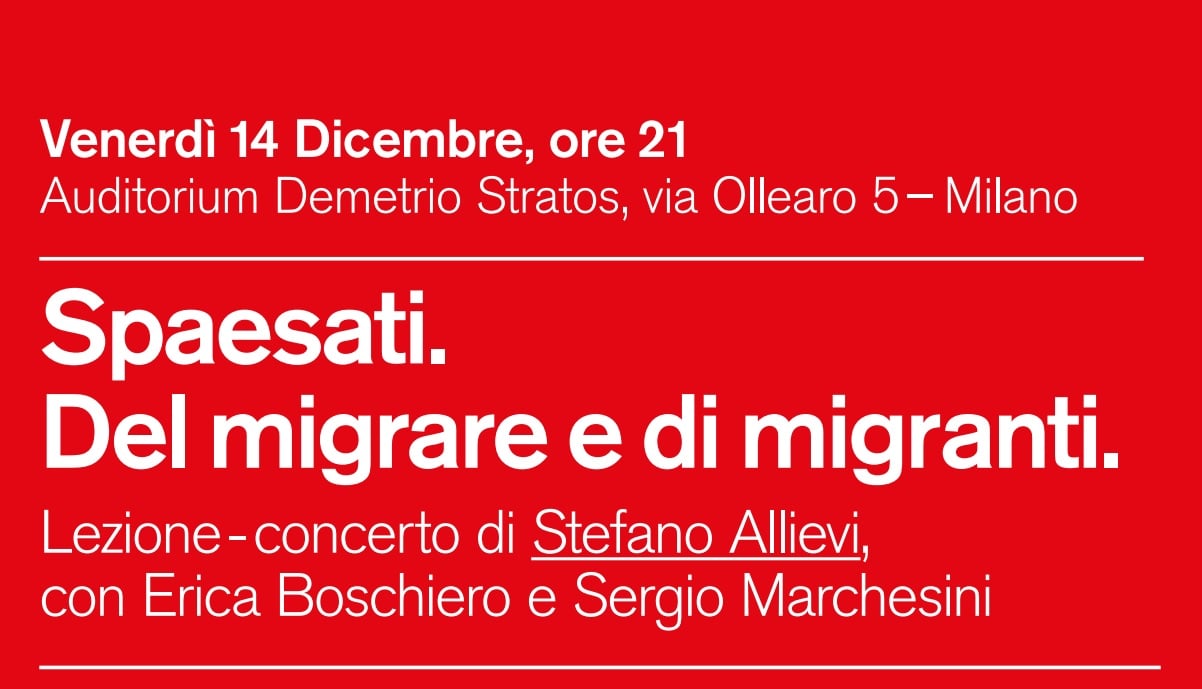 Le migrazioni di ieri e di oggi, in un continuo rimando di parole, dati, note e racconti. Stefano Allievi, professore di sociologia all’Università di Padova ha deciso di condensare l’approfondita conoscenza del fenomeno migratorio (ha al suo attivo decine di pubblicazioni sul tema) in un format innovativo, che intreccia la divulgazione con la musica live. Spaesati. Del migrare e di migranti diventa una straordinaria occasione per conoscere, smontare luoghi comuni, ragionare.