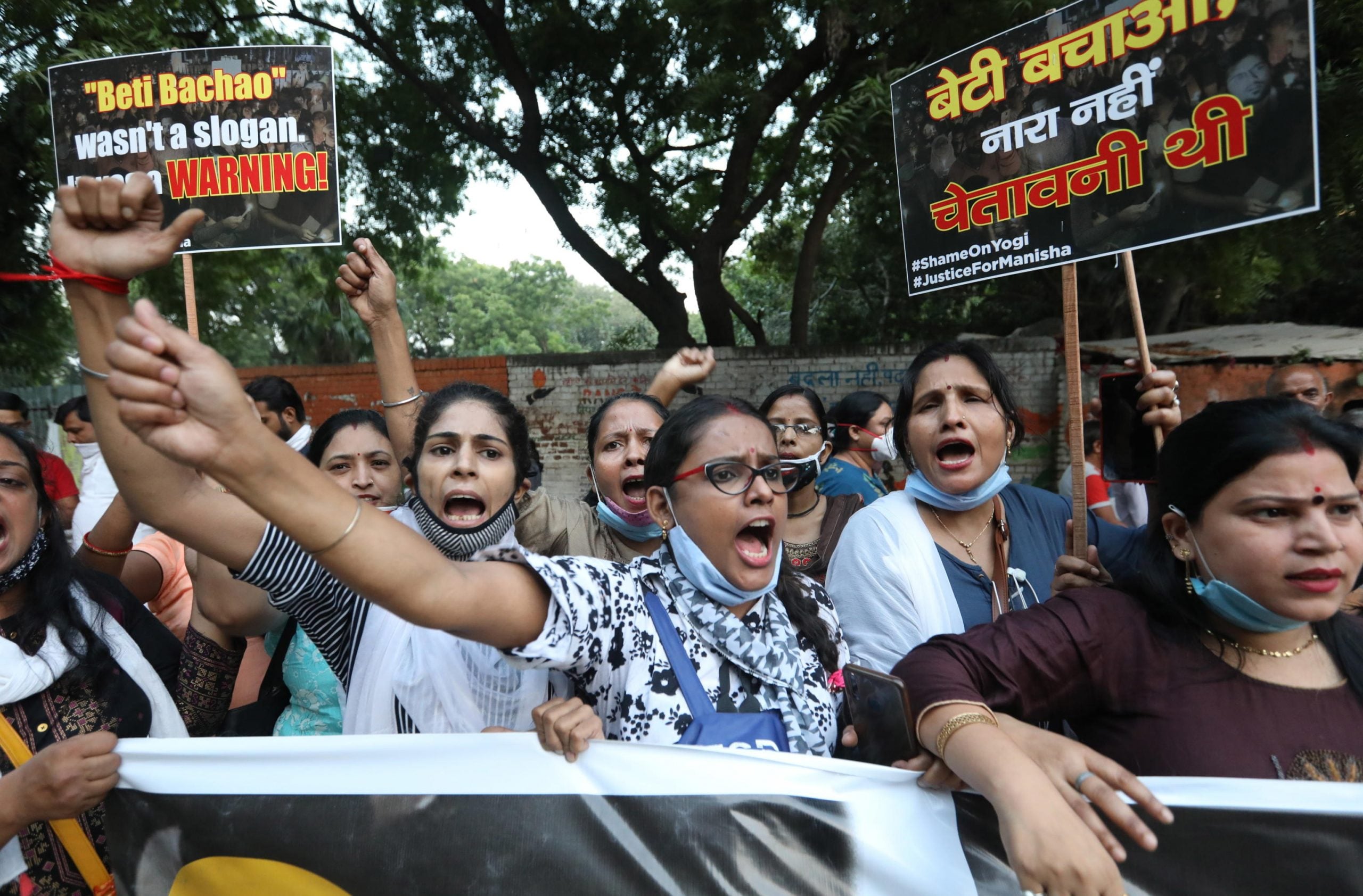 Foto | Le proteste per uno stupro di gruppo di una ragazza di 19 anni avvenuto a Dalit girl, nello stato di Uttar Pradesh a ottobre del 2020