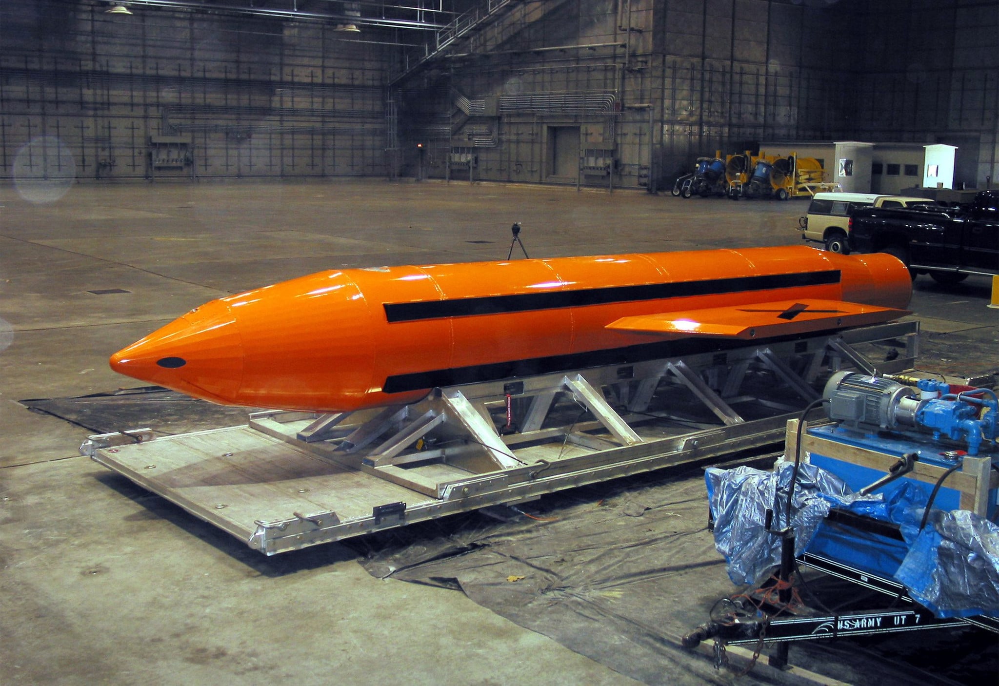 Si tratta della più potente bomba non nucleare, la madre di tutte le bombe, come è stata definita, nove metri di lunghezza, 11 tonnellate di esplosivo.
