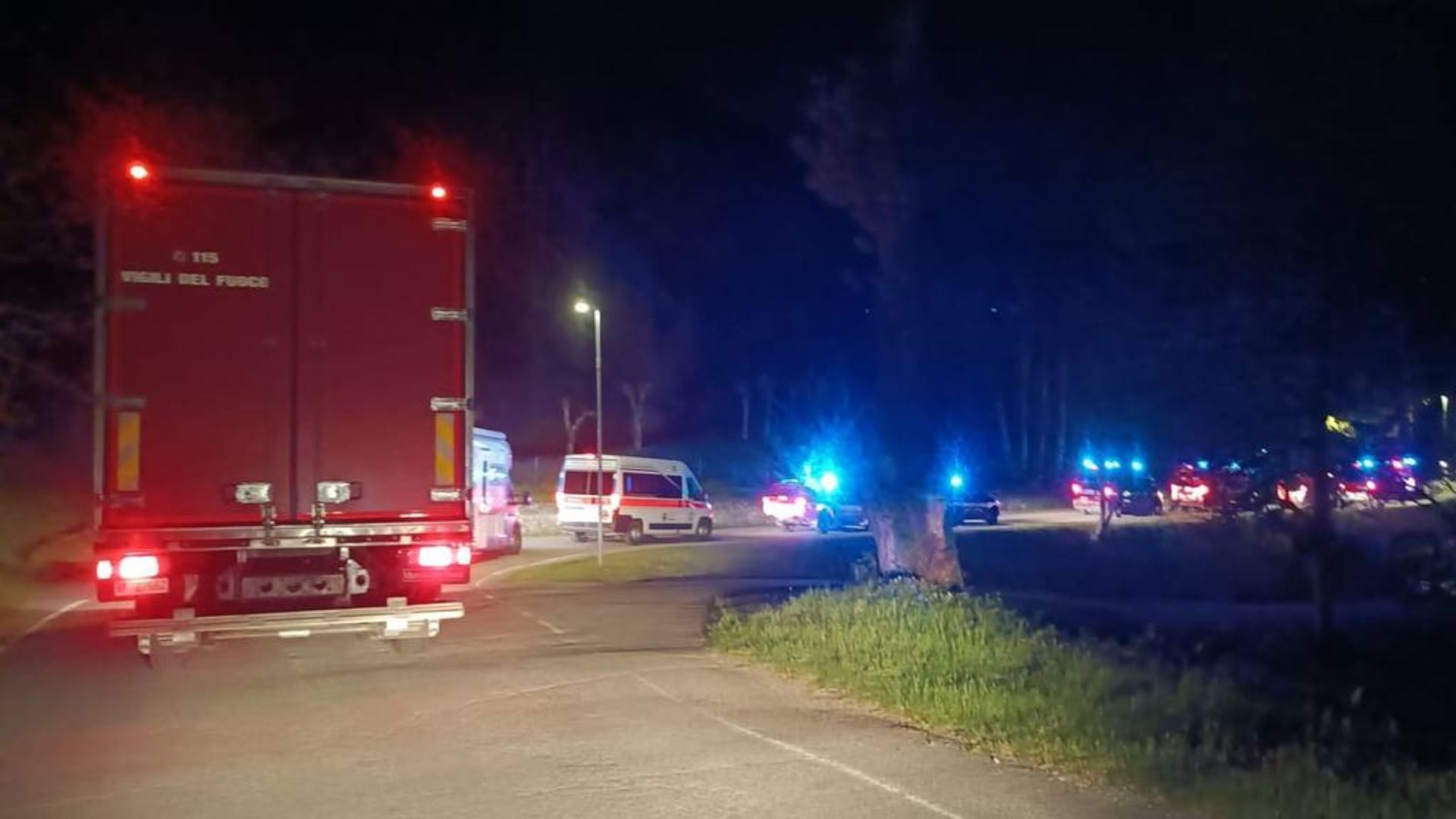 I boschi di abeti, le cascine, la chiesetta, i cartelli che mandano al camping e al ristorante. I tralicci dell’alta tensione. Enormi, fanno sembrare piccolo tutto il resto, minuscola la chiesa barocca a cui uno passa accanto. I cavi dell’alta tensione riempiono lo spazio, insieme al silenzio. Squarciato solo dai motori dei convogli dei mezzi dei Vigili del Fuoco che da ieri sera fanno avanti e indietro sulle strade dove i cartelli recitano: “Appennino bike tour”, tentativo di rilanciare col turismo queste zone interne spopolate. Un serpentone rosso, di giorno, una fila lunghissima di lampeggianti blu, la notte. Per ore si è cercato soprattutto di fermare l’acqua che continuava ad allagare i locali distrutti dall’esplosione. I sommozzatori cercano i corpi dei 4 dispersi, partono in gommone dal campo base dei pompieri allestito a poche decine di metri.