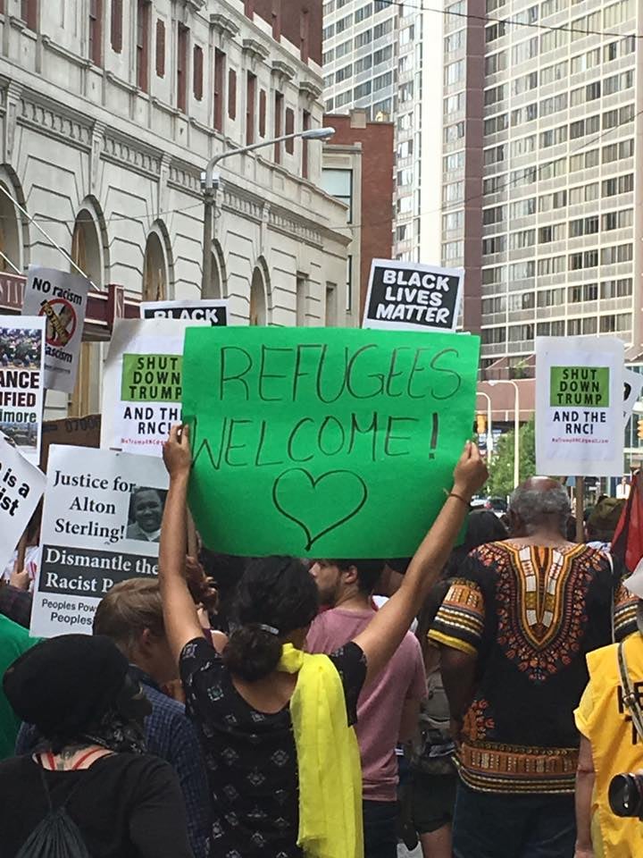 Trump è del resto un candidato controverso, per molti tra gli stessi repubblicani, e l’arrivo di centinaia di contestatori non è una sorpresa. “E’ un pericolo per la democrazia americana, è un populista che fa emergere il peggio dalle persone, ma gli americani non sono così”, mi dice Judy Stanley, che è venuta da Toledo, alcuni chilometri da Cleveland, per protestare contro Trump. Secondo Mark Costello, di Chicago, gli Stati Uniti stanno vivendo un momento drammatico, “le tensioni razziali sono alle stelle, Trump non fa che acutizzarle”. Naomi Rosenthal viene invece da Ann Arbour, una città universitaria del Michigan. Fa parte dei “Jews against Trump”, gli ebrei contro Trump. Spiega che il giudaismo “è umanesimo, gli ebrei sono stati perseguitati, conoscono il razzismo. E Trump è razzista, perché pensa che alcuni gruppi etnici sono superiori ad altri”.