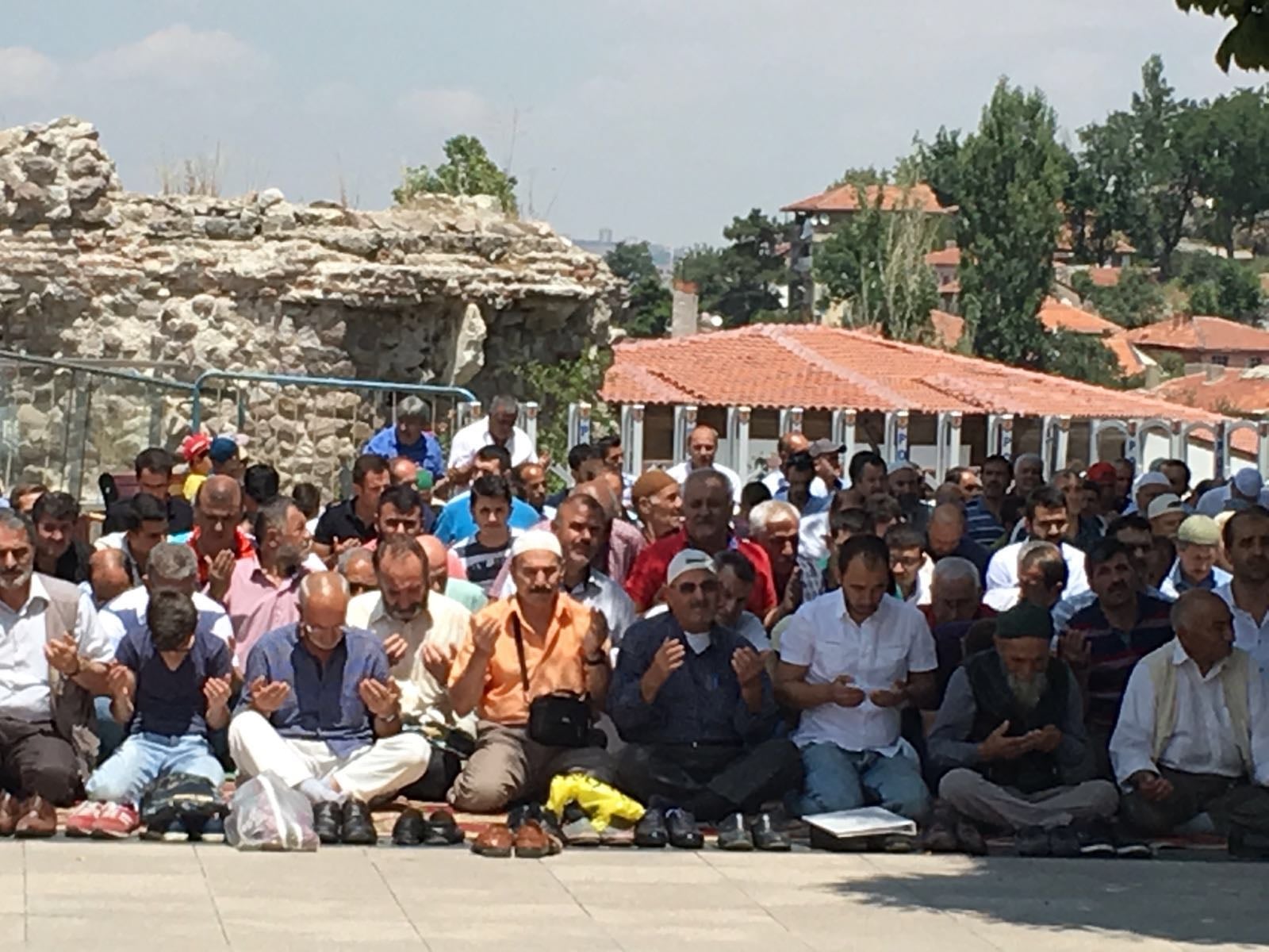 A metà giornata la Moschea di Haci Bayram, la più antica e importante moschea di Ankara nel quartiere di Ulus, è piena di gente. All’interno non c’è più spazio. Molti pregano fuori. Gli uomini da una parte le donne dall’altra. Gli altoparlanti trasmettono la voce dell’imam. La presenza della polizia è molto discreta. Non sembra certo di essere in un Paese in stato d’emergenza.