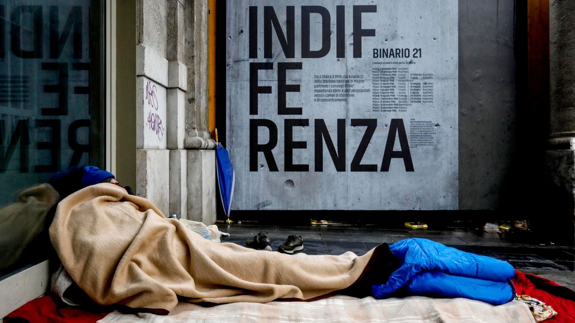 A pochi metri da auto di lusso che sfrecciano nel silenzio, da locali dove si esce con sciarpe e cappotti eleganti, ci sono almeno una decina di persone che dormono per terra, vulnerabili fino alla prostrazione. “Un altro posto simile a questo è in via Solferino – racconta Daniele – c’è una piccola galleria dove si ride, si scherza, si beve nei locali. Loro invece dormono sotto le vetrine dove si vende un paio di scarpe a 350 euro”.